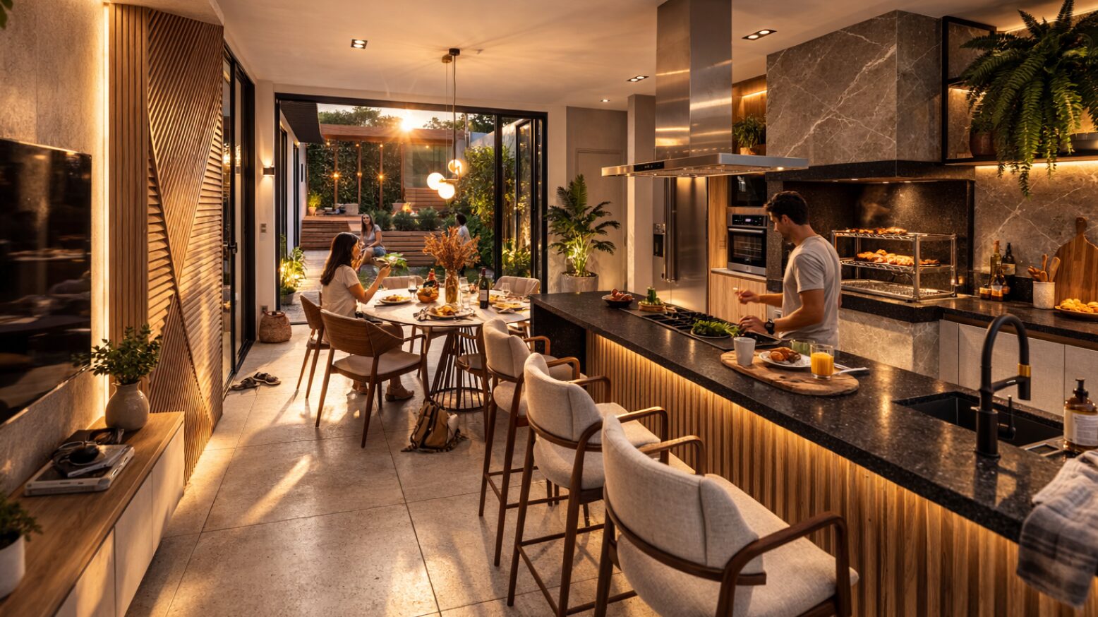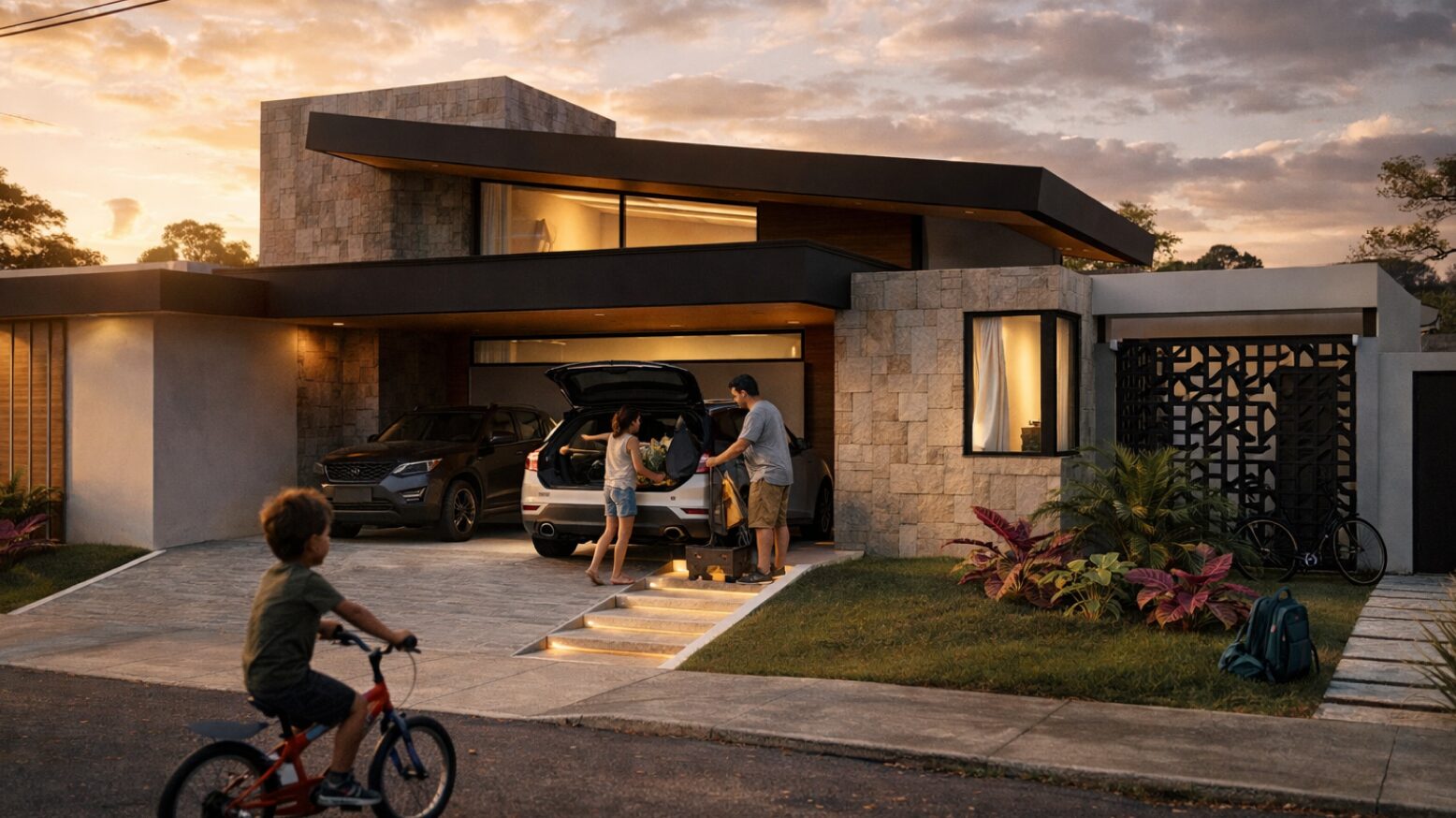 Residência térrea projetada para um condomínio familiar e privativo em Campo Grande, onde arquitetura contemporânea, conforto e convivência se encontram. O projeto valoriza a integração entre os ambientes internos e os espaços externos, criando uma casa acolhedora, iluminada naturalmente e pensada para o dia a dia da família. Materiais naturais, linhas horizontais marcantes e soluções de paisagismo contribuem para uma estética sofisticada e ao mesmo tempo tranquila, reforçando a ideia de morar com qualidade, privacidade e proximidade com a natureza.